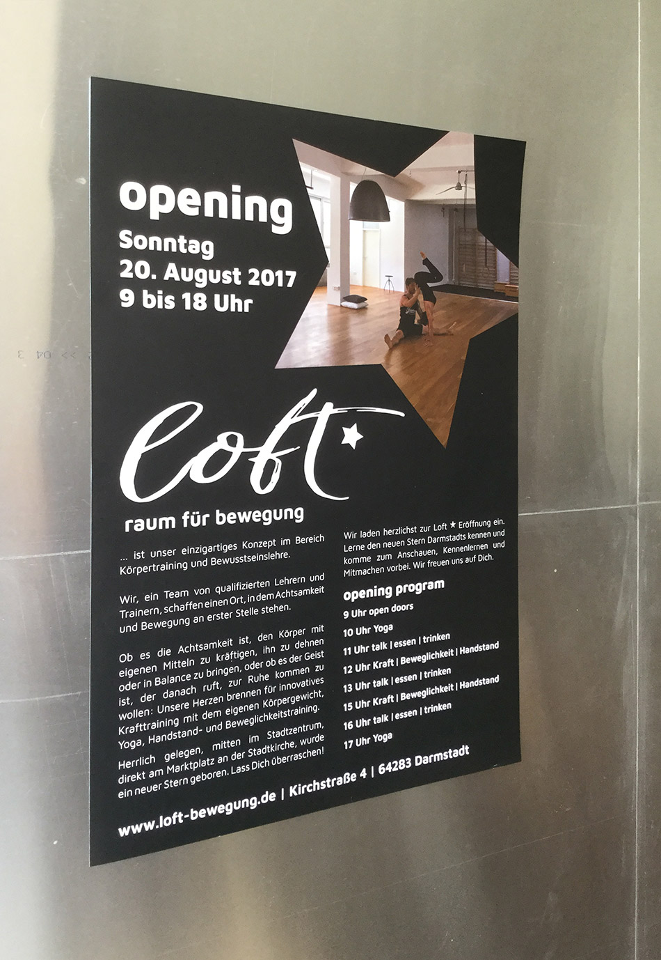 Zur Neueröffnung in Darmstadt haben wir im Rahmen des Corporate Design ein Plakat gestaltet.