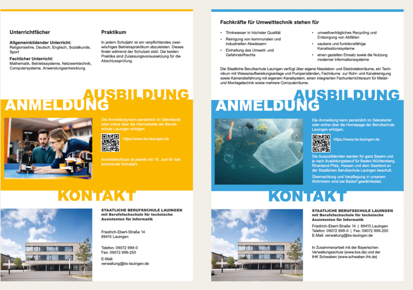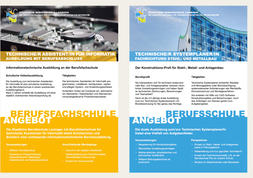 Informations-Faltblätter zu verschiedenen Ausbildungszweigen und -möglichkeiten an der BS Lauingen
