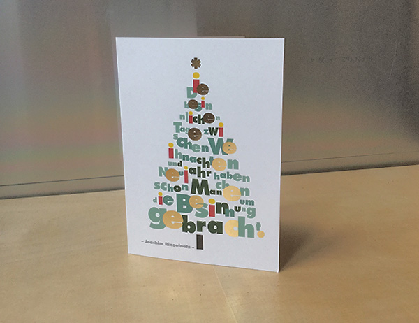 von Joachim Ringelnatz bilden einen Weihnachtsbaum mit Kerzen und goldenen Kugeln.