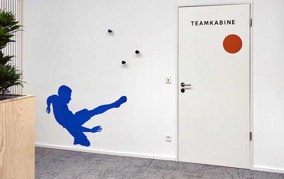 Zum Wiederaufbau der Filiale Offenbach-Stadion haben wir in Kooperation mit Hausgrafik das Thema Fußball kreativ aufgearbeitet.